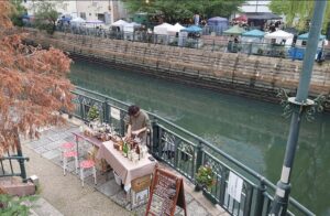 写真のように、川の対岸で出店予定